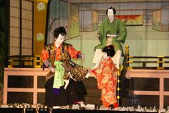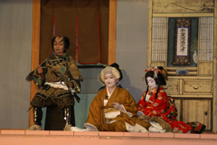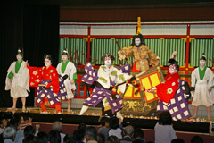 オープニングを華やかに演出する歌舞伎舞踊「寿式三番叟宝の入船」、保存会による「奥州安達原三段目袖萩祭文の場」のほか、横尾歌舞伎の十八番「絵本太功記十段目尼ヶ崎閑居の場」を少年団が、新十八番「菅原伝授手習鑑車引きの場」を保存会の若手が演じており、確実に後継者が育成されています。