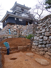 平成21年11月16日から12月8日にかけて、浜松城跡の整備事業にかかわる資料を得るための発掘調査を実施しました。発掘調査の対象としたのは、天守門跡と富士見櫓(やぐら)跡の2地点です。