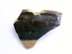 出土品には、陶器や大量の瓦があります。出土陶器の中では、富士見櫓跡から出土した天目茶碗が注目できます。