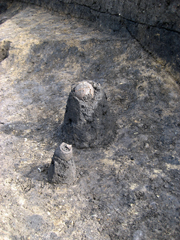 また、方形周溝墓と重なり合うようにして、多数の小穴が見つかりました。