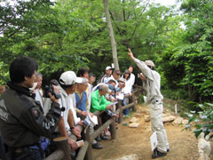 富士見櫓跡では2009年の調査で確認した礎石列を再度発掘し、今年の調査成果と合わせて観察していただきました。