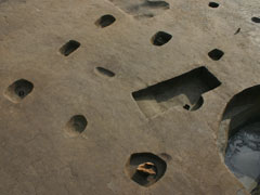 2間×2間の規模で、4つ穴には、柱根(ちゅうこん)が良好に残されていました。