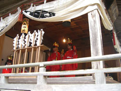 この神楽は江戸時代から行なわれているもので、地元の女子小学生による舞いが披露されていました。