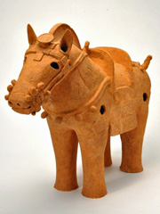 随所に鈴を取り付けた馬具を身にまとっており、飾り馬の姿を正確に表現しています。