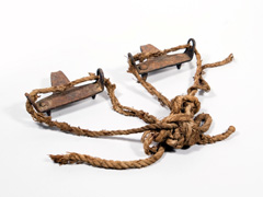 冬、丸太の表面が凍る時期、筏師は「ガンリキ」(写真3)をはいて天竜川の急流を下りまし