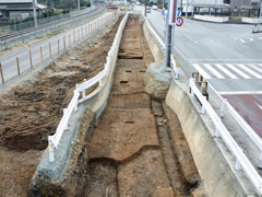 最終C調査区においては、側道工事の際に1m以上も土が入れ替えられており、江戸時代以降の溝の一部を確認したにとどまりました。