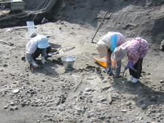 鳥居松遺跡の発掘調査には、専門調査員の指導のもと、多くの人たちがかかわっています。