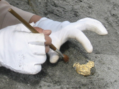 発掘調査というと、考古学の専門家がハケを使って遺物(土器等)を掃除している姿が思い浮かぶのではないでしょうか。