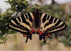 ギフチョウはアゲハチョウ科のチョウで、開長5~6cmほどあります。黒と黄の縦じまが交互に並び、岐阜県で初めて発見されたことに由来します。