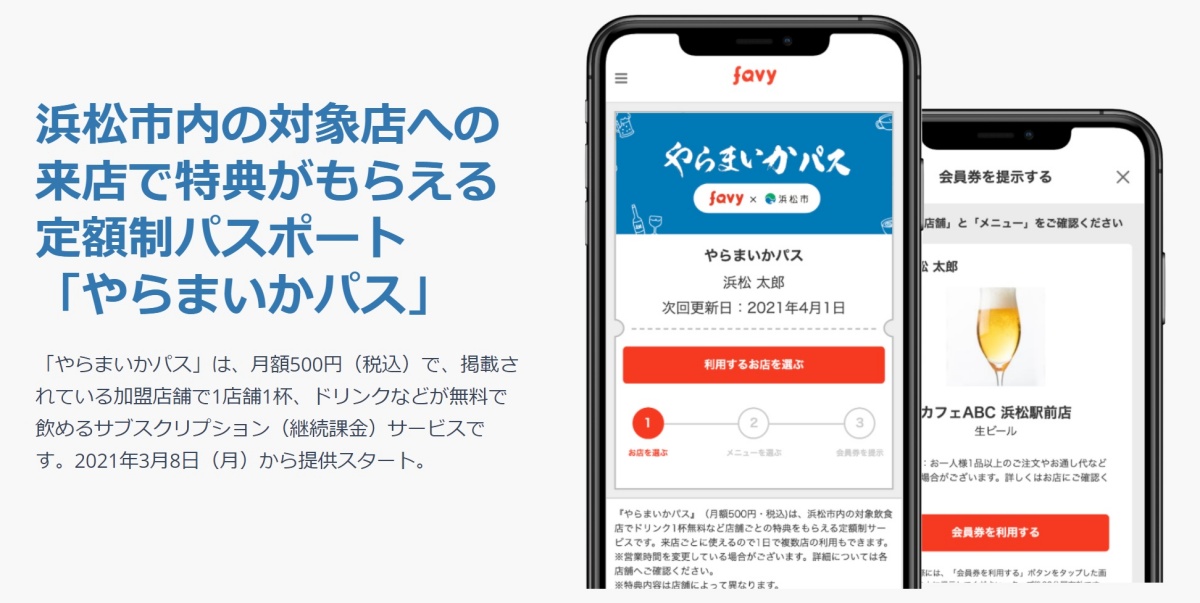 足立氏:都市圏を中心に導入数が増え、とくにコロナ禍で需要が伸びました。コロナ禍による実来店客数の落ち込みは、地方でも顕著だったと思います。弊社としてもfavyサブスクのモデルが地方都市で機能するか検証したいと考えており、浜松市実証実験サポート事業へ申し込みました。