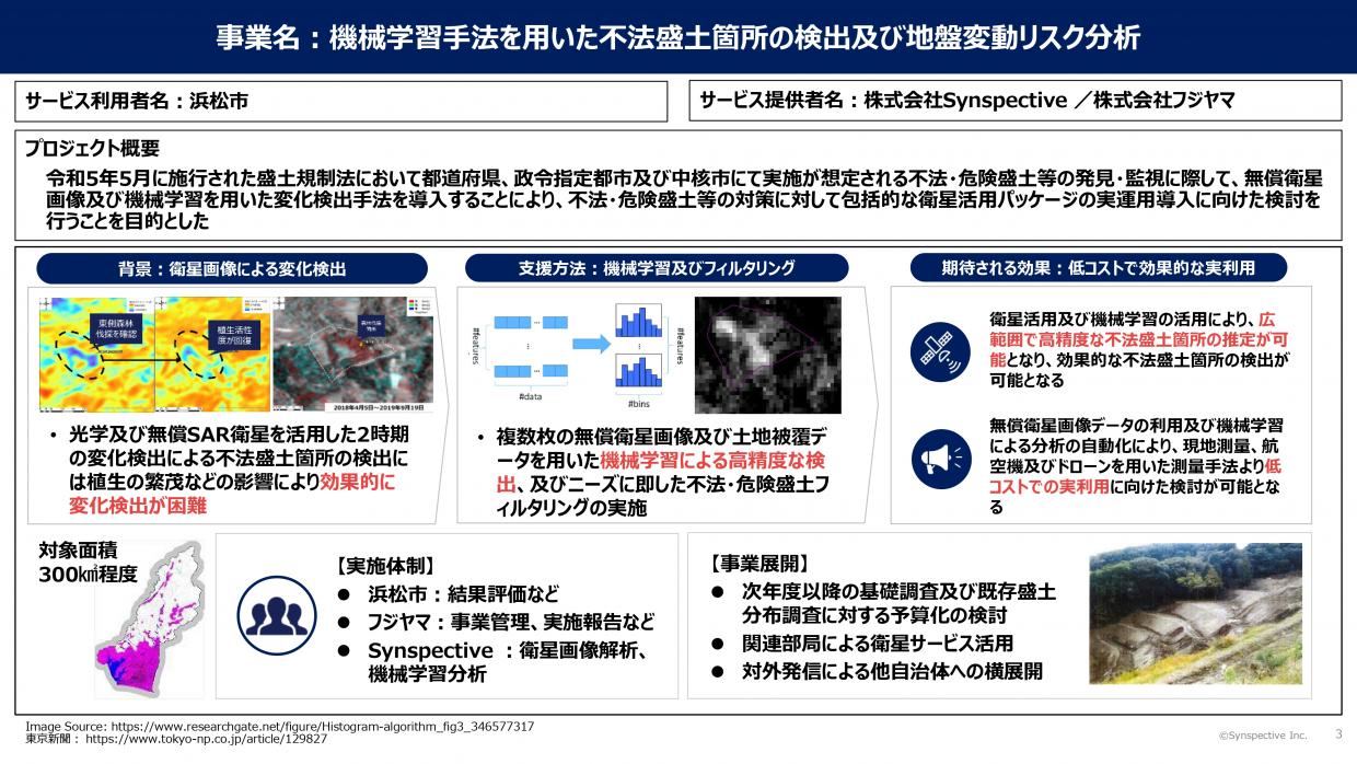 山浦氏:シンスペクティブさまとは、内閣府の実証実験などでご一緒したことをきっかけに、衛星活用で協業を進めています。とくに、今回の盛り土の監視はSAR衛星の効果が期待される分野であり、ともに事業化を進めるべく浜松市の実証実験にお誘いしました。