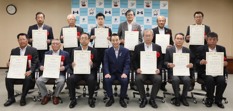 令和3年度に発生した災害の復旧支援活動へご尽力いただいた企業の皆さまへ感謝の意を表し、市長より感謝状を贈呈いたしました。(令和4年6月27日)