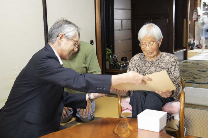 今年度は百歳のお祝いとして、浜松市から額入り寿詩、静岡県から花器と寿詩、国から銀杯と寿詩が贈られました。