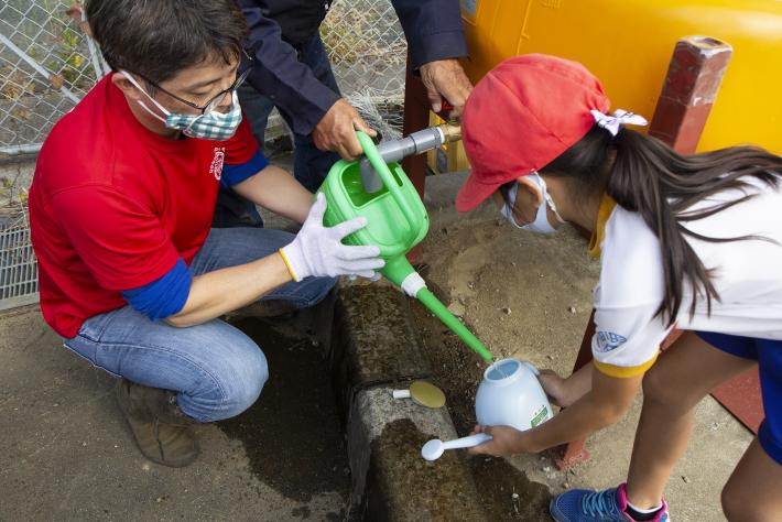 〈井戸水を溜めたタンクから、水をもらいました〉