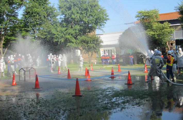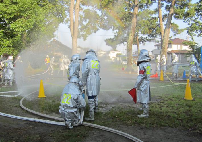この訓練には、地元自治会の人や消防団、東消防署の署員、東区役所の職員などが参加。第1方面隊訓練は、住宅密集地における建物火災を想定し、適正な指揮命令や消火活動を行うことを目的として、第2方面隊訓練は、地元住民・自主防災隊・消防団との協力体制や消防活動の基本動作の確認などを目的として、バケツリレーや可搬ポンプによる放水訓練などを行いました。