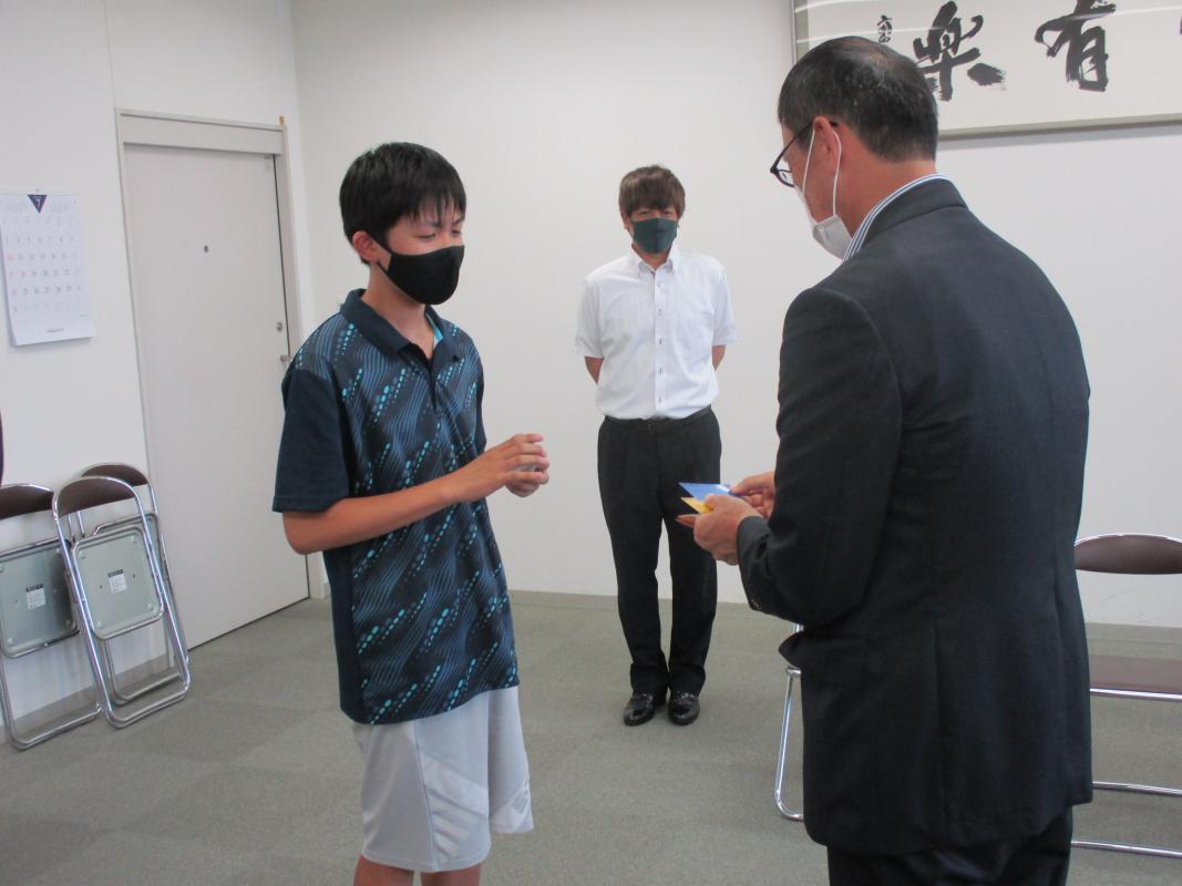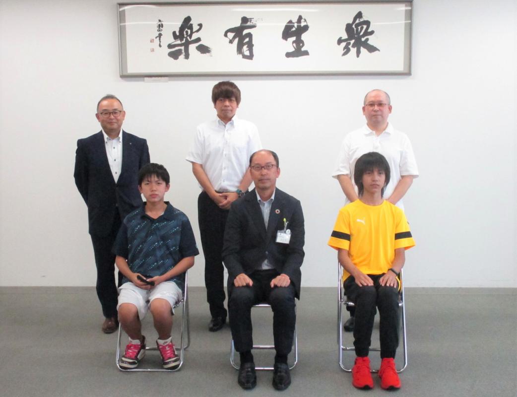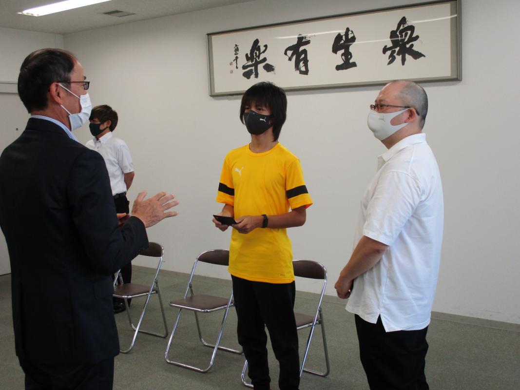 尾田選手と佐藤選手が、それぞれ区長へ今後の競技等への意気込みを語ると、東区長は「都道府県予選で1位・2位が東区出身の選手だということで大変嬉しく思う。今後の活躍を期待しています。」激励の言葉を送りました。