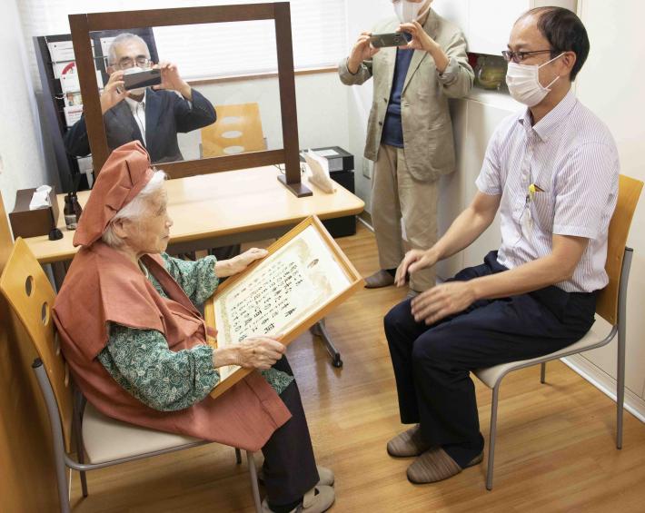9月16日・水曜日~18日・金曜日の期間中、区長・副区長などが100歳を迎えられた方へ祝意訪問を行いました。その中から、9月17日・木曜日に東区長が祝意訪問した様子をお伝えします。