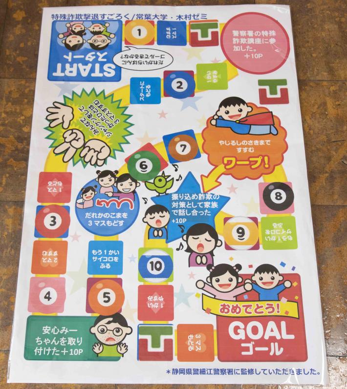 浜松市は現在、浜松学院大学、静岡文化芸術大学、常葉大学、静岡大学、聖隷クリストファー大学の5大学と連携。今回は、10月29日・木曜日に長上協働センターで行われた常葉大学健康プロデュース学部の学生が考案した「特殊詐欺撃退すごろく」を使った講座の様子をお伝えします。
