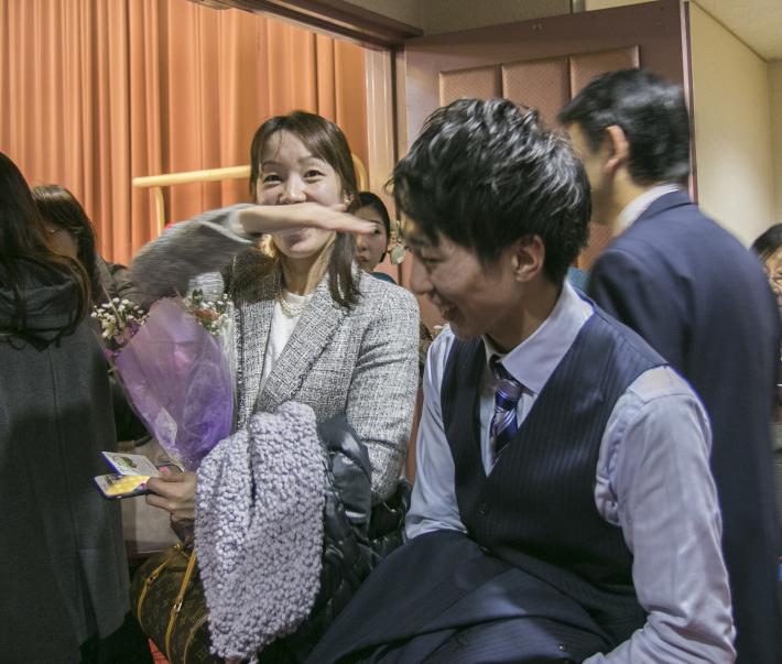 式の後の茶話会でも、恩師や旧友と写真を撮ったり話をしたりして、積もる話に花を咲かせていました。