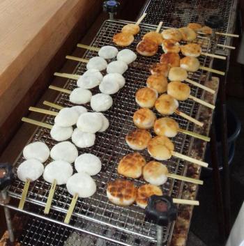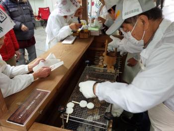中野町を考える会も街中へ初出店し、ソラモに各地域の自慢品ブースが並ぶ中、オリジナルグッズのほか「はりつけ餅」の実演販売も行われました。この「はりつけ餅」は、その昔天竜川を渡った旅人が食べたと言われ、餡子入の餅に醤油を塗った絶妙な味となっています。