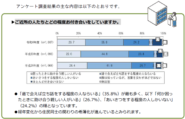 経年変化から住民同士の関わりの希薄化が進んでいるとみられます。