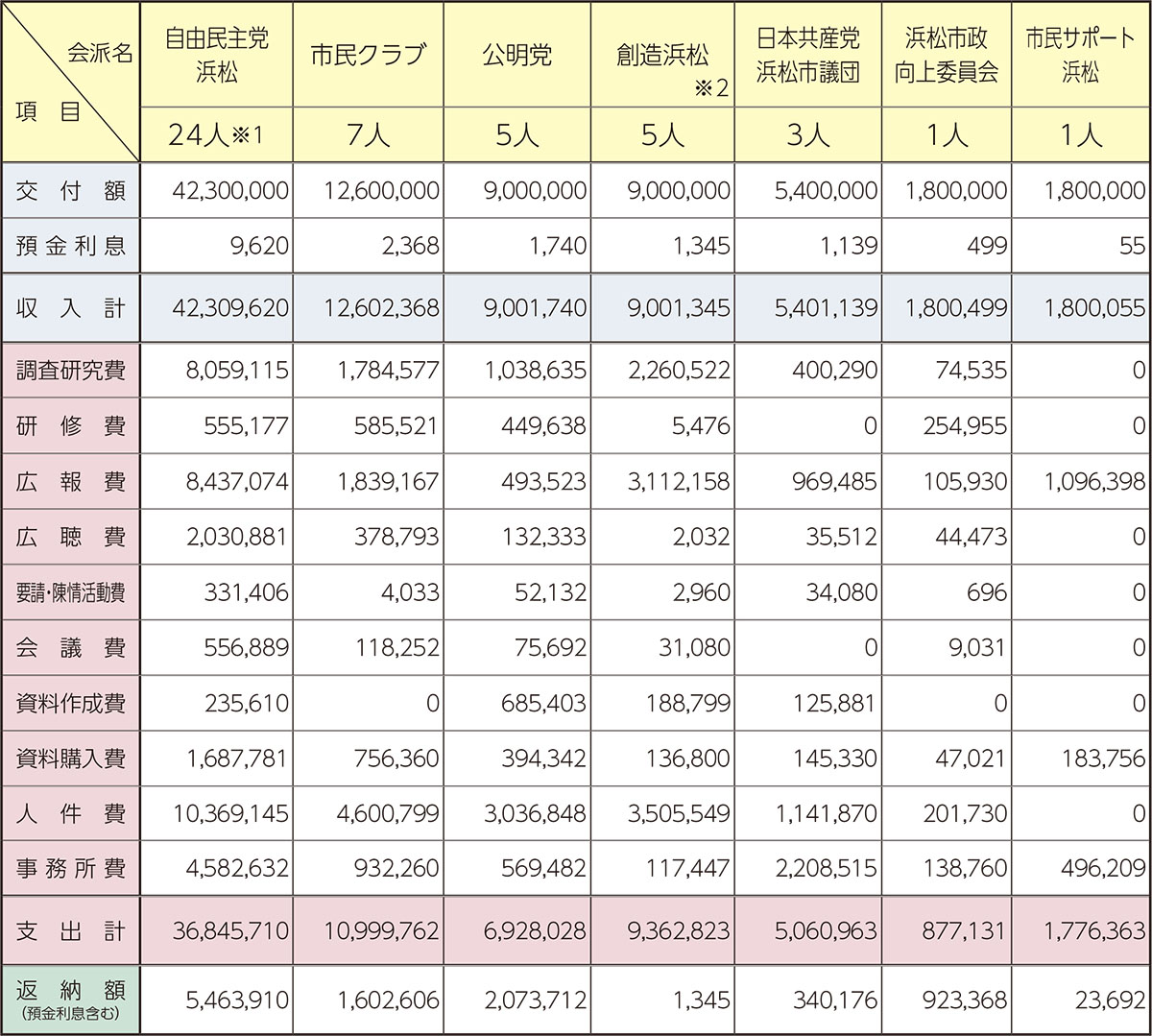 ※1令和6年9月26日、自由民主党浜松所属議員1人が辞職し、24人から23人になりました。