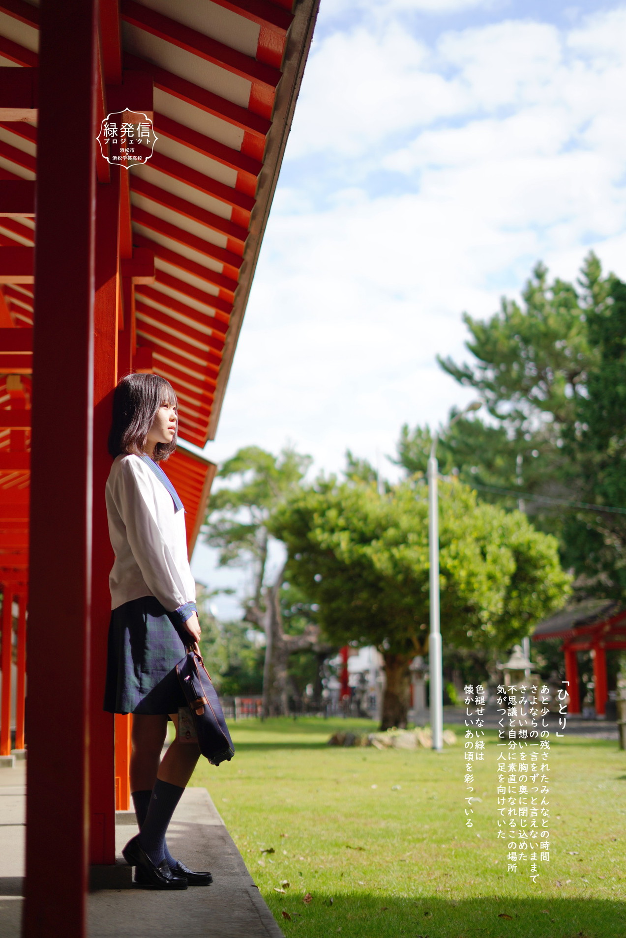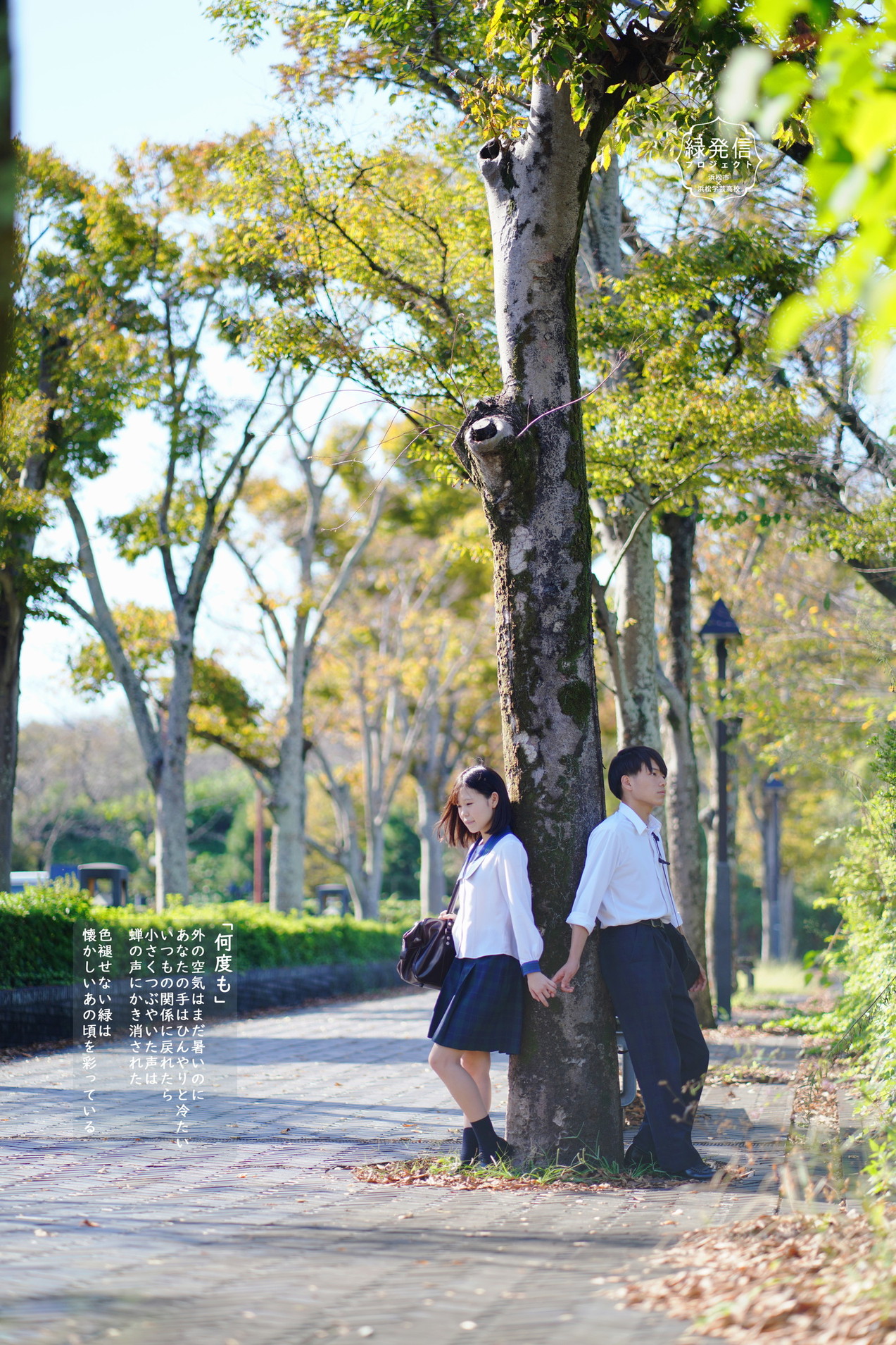作品は、2年生7人がモデルや撮影、演出、コピーライトなどを分担。生徒たちにとっては等身大、大人にとっては懐かし「青春」の一場面として、地元の景色を切り取っています。