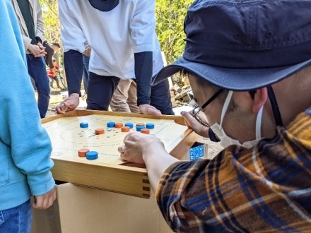 木登り、泥遊び、穴掘り、たき火、ブランコといった自然的な遊び、ロープ、のこぎり、金づち、ボンドなどを使った工作的な遊び、ロックバランス、落書きといったアート的な遊び、モルック、カロムといった競技的な遊びなど、ここでできる遊びの幅はすごく広いです。