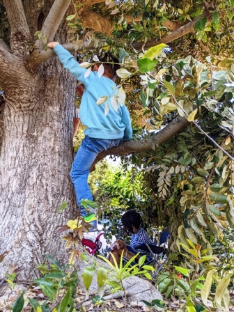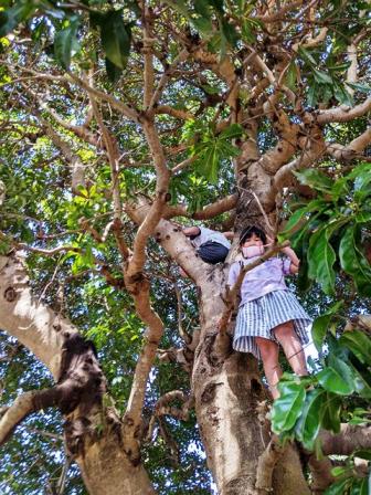 子供たちが木登りにチャレンジする姿や、木の上で誇らしげにしている姿をあちらこちらで見ることができました。