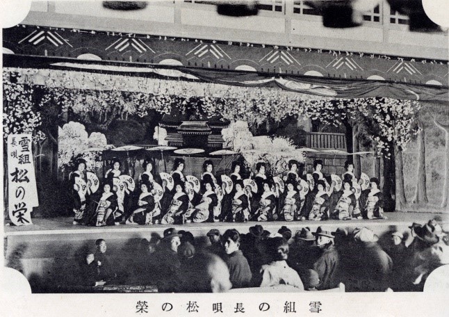 ▲全国産業博覧会(昭和6年)で舞踊を披露する芸妓