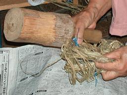 木槌でたたいて、やわらかくします。