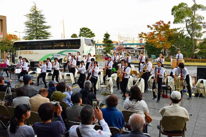 11月9日(土曜日)、なゆた・浜北駅前広場で「まちなかコンサート」が開催されました。光が丘中学校、清流中学校、浜北西高校のブラスバンドが演奏を披露。演奏中にはイルミネーションの点灯式も行われ、指揮者の合図とともに一斉に光がともり、訪れた人たちを楽しませました。