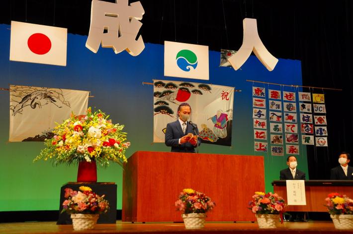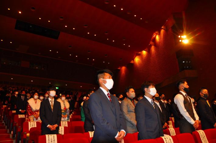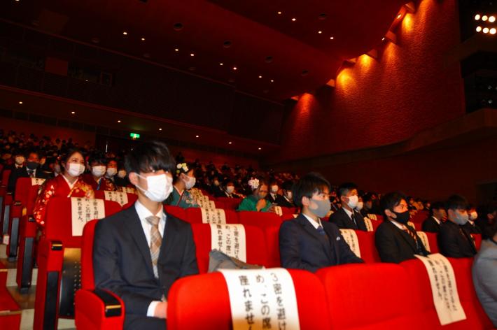 1月10日(日曜日)、浜北文化センターで「浜北地区成人式」を開催しました。今年は、新型コロナウィルス感染拡大防止のため、中学校区で午前(浜名中、麁玉中、北浜東部中)と午後(北浜中、浜北北部中)の2部に分けて行われ、671人が出席しました。家族、友人、恩師へ感謝するとともに、これからは自分たちがまわりの人たちの支えになりたい、新しい時代の担い手として活躍したいと新成人代表があいさつし、出席者一同、決意や目標を新たにしました。