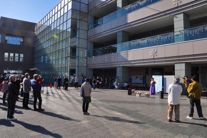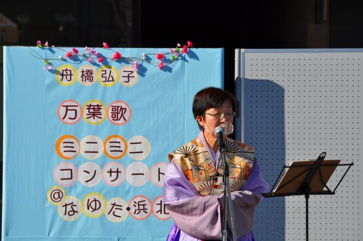 みなさんは、浜北ゆかりの万葉歌を知っていますか?より多くの人に万葉集・万葉歌に興味を持ってもらうことを目的に、1月21日(木曜日)、いつものコンサート会場「万葉の森公園」を飛び出して、「なゆた・浜北」で、『万葉歌ミニミニ・コンサート』が開催されました。このイベントは「浜北区役所サービス向上プロジェクト」に「万葉の森公園・伎倍の茶屋」が協働することで実現。会場に集まってくれた人たちは、万葉歌シンガーソングライターの舟橋弘子さんによる「メロディーにのせた万葉歌」を聴くことで、万葉歌を身近に感じてくれたようでした。