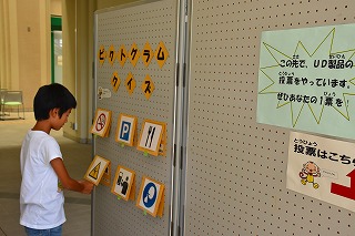 7月30日(月曜日)~8月3日(金曜日)、浜北区役所で「ユニバーサルデザイン(UD)製品展&模擬投票」を開催しました。期間中に訪れたおよそ600人が文房具やキッチン用品など50点の製品を試して使いやすさを実感しながら、キッチン用品6点を対象とした模擬投票に参加しました。