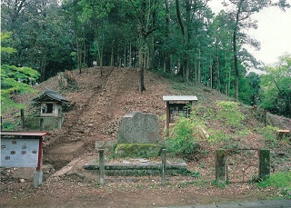 天竜区山東の丘陵上にある市内最大の前方後円墳で、今年、国の史跡に指定されました。全長は83m、高さは8mほどあります。この規模から、葬られた人物は、当時県内でも随一の豪族だったと推測されています。