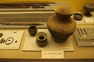 館内の歴史資料館に、二本ヶ谷積石塚群のほか、浜北地域の遺跡から出土した考古資料を展示しています。