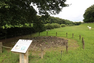 「積石塚」とは石を積んで造られた古墳で、全国的にも珍しい構造です。渡来人の墓と推測され、この付近に渡来人の集団が暮らしていたことがうかがえます。渡来人は、中国や朝鮮半島から移り住んだ人たちで、須すえき恵器や鉄製の農具などを日本に伝えました。つみいしづか広場では古墳群のうち6基の積石塚を再現。遊歩道を散策しながら、歴史を感じることができます。