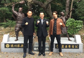 浜松城の前身、引間城の跡地に建つ東照宮に「二公像(家康公・秀吉公)」が設置されています 幼少期の豊臣秀吉も引馬城を訪れたという記録も残ることから、天下人となった家康公と秀吉公の2人の武将が訪れた場所ということで、パワースポットとして話題になっています。 2人の間に立ち写真を撮ると、出世運がうなぎのぼり!