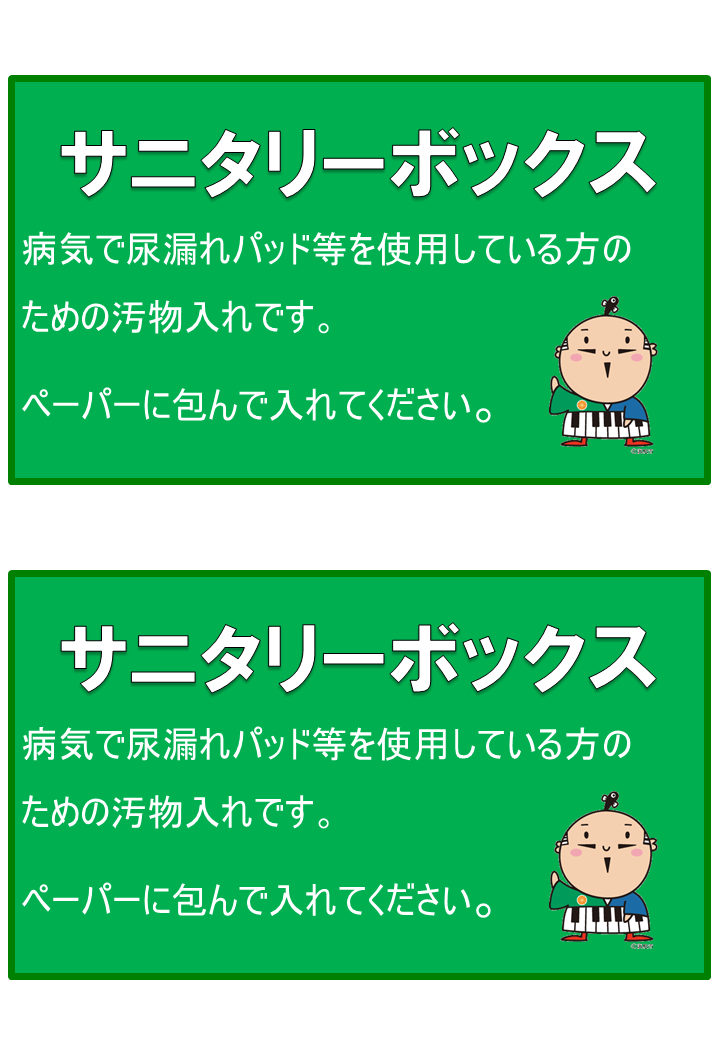 表示例1(サニタリーボックス上面、側面、壁面など)