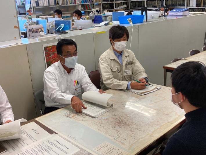 まずは、公共建築課内で市役所の仕事の紹介。職場の雰囲気や、職員の働く様子も見てもらえました。予定していた1時間はあっという間に過ぎ…