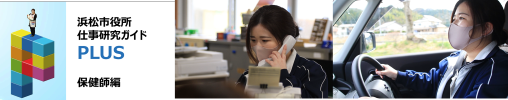 浜松市や市役所の概要を紹介しているほか、採用3年目の若手職員が自身の仕事について紹介しています。