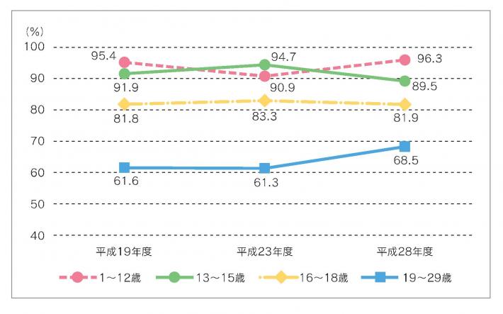 1~12歳の朝食を毎日食べている人は、平成23年度と比較して増加しています。