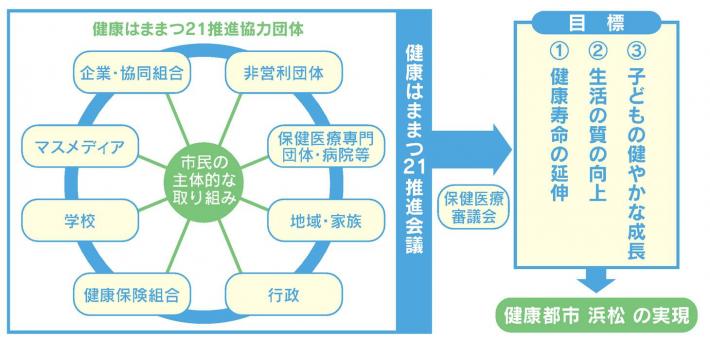 「健康はままつ21」は、市民一人ひとりが生きがいを持ち、いきいきと生活できる健康都市浜松を実現するため、浜松市が市民の健康づくりの指針として策定した健康増進計画です。