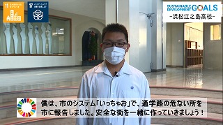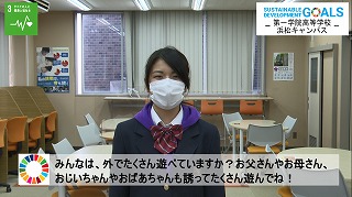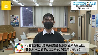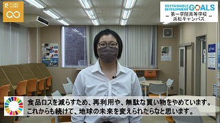 高校生が日常生活や学校生活の中でSDGs達成に向けて、感じていることや呼びかけたいことを伝えるメッセージ動画(15秒/撮影:2021年10月)