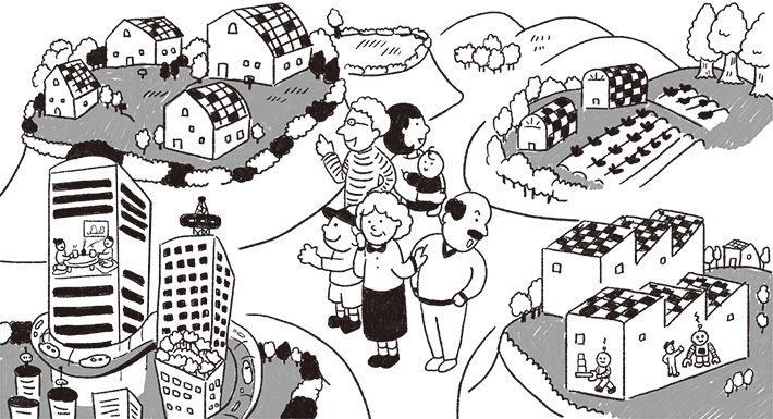 拡大していた居住地は地域の拠点に集約傾向にあり、人口密度の高い地域は一層高まり、居住地域と農業や工業を営む生産する地域とのメリハリが明確についています。これにより、土地や家屋の流動化が進み、空き家や空き地は減少し、住宅団地などの一団の開発はほとんどありません。一方、生産する地域では農地の集約や企業の集積が進むなど、生産性が高まっています。