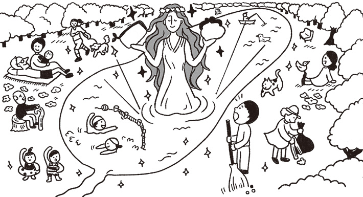 環境教育も進み、「環境にやさしいことはおサイフにもやさしいこと」と、「自然環境を守ることは人が生きるため絶対的に必要なこと」をすべての市民が理解し、日々の生活の中で、自然環境と共存する方法を自ら考え、行動しています。また、こうした環境に配慮した取り組みを世界に提供することで、地球環境の保全に貢献しています。