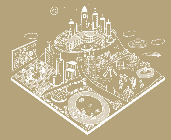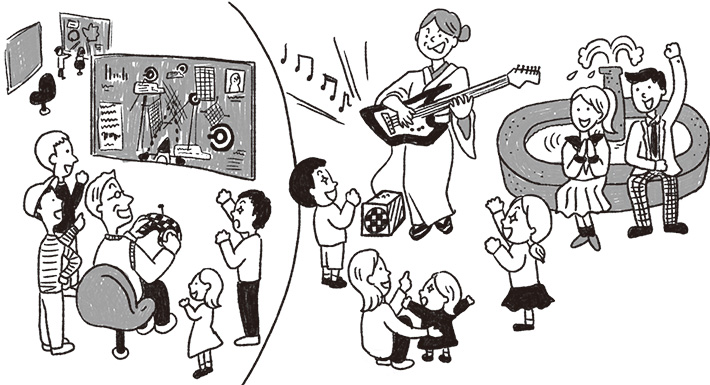 地域では、予防に重点を置いた生活指導を充実させています。たとえ病気になったとしても、地域社会に見守られている安心感があり、自らの症状を受け入れ、望みを持ちながら生活の質を高める努力をしています。また、食材の調達・食事の用意を支援する仕組みが進化するとともに、歩行や普段の行動を補助する技術も実用化されており、自分らしい生活を送ることができます。こうした技術は、世界中で好評を博し、海外に輸出されています。