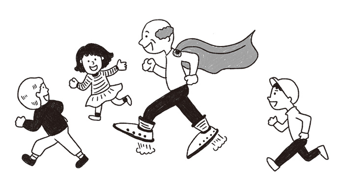 市民の5人に2人が65歳以上。とはいえ、もはや「高齢者」とは呼ばれていません。浜松の健康寿命は、生活習慣病の予防や医療の発達により更に向上し、65歳以上の市民が活躍できる時間は20年以上もあります。定年制度を撤廃する企業も増え、働き続けながら、経済的に自立しています。その中で、若い世代に学術や技術、社会で生きる術を伝承し、将来を後世に託しています。まちなかに生活に便利な住宅が用意される一方で、住まいを自然豊かな中山間地域に移し、晴耕雨読の毎日を楽しむ人もいて、住みたいところで暮らし、健康で自分らしく生きる「カッコいい老い方」が一般的です。