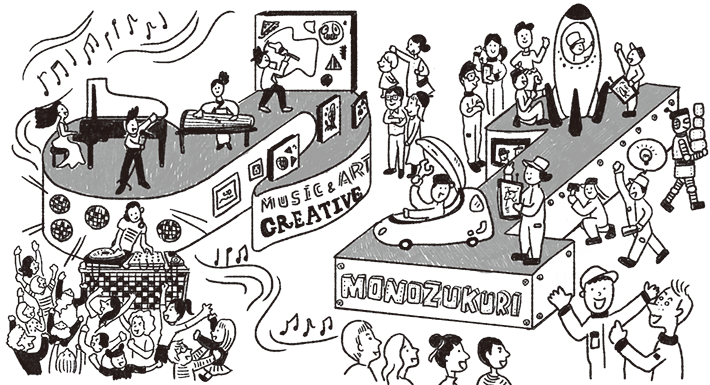 文化芸術分野でも、新鋭のミュージシャンやアーティスト、クリエイターが創作活動を繰り広げ、私たちに感動を与えています。また、音楽を中心とした多様な文化が新たな価値を生み出し、クリエイティブ産業として成長を遂げています。